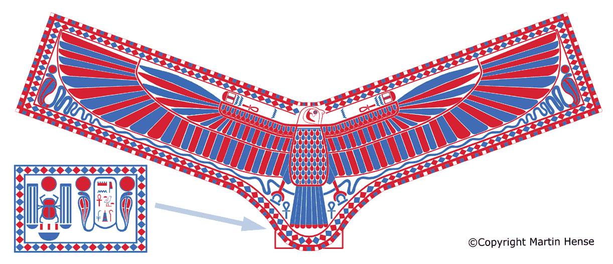 Reconstruction of a Falcon Wing. The rectangle in the lower left corner shows the decoration on the sleeve.